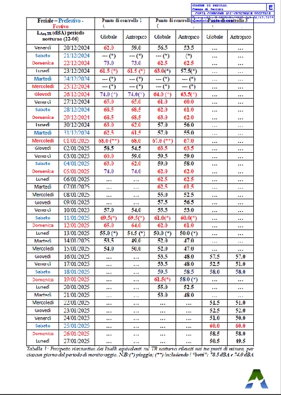 Rilievi fonometrici – Ing. Boilini anno 2024: