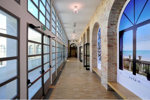 È caratterizzato dalla vetrata continua che si apre su piazzale Michelucci, di cui offre una suggestiva visione. La presenza di una parete quasi completamente in vetro, si presta ad accogliere piccole esposizioni fotografiche e consente alla luce naturale di penetrare prepotentemente all’interno e pervadere l’intero spazio. Nell’altra parete del corridoio sono state inserite gigantografie composte da un collage di foto che presentano il lavoro dell’architetto Anita Boccuccia, Presidente dell’Associazione culturale “Ville e Palazzi dannunziani” ed ideatrice di un catalogo sull’architettura dannunziana a Pescara che ripercorre, attraverso vedute prospettiche, progetti e disegni, la storia dei villini storici in stile Liberty ancora presenti nella Città di Pescara: obiettivo principale è la tutela di queste testimonianze architettoniche, simboli della cultura del primo ‘900 e di un modo di vivere la città e l’arte attraverso stili del tutto nuovi rispetto al passato. Questo catalogo è l’occasione per ripercorrere un pezzo della storia urbanistica della Città di Pescara facendo conoscere ad un pubblico sempre più vasto il nostro ricco patrimonio architettonico.
