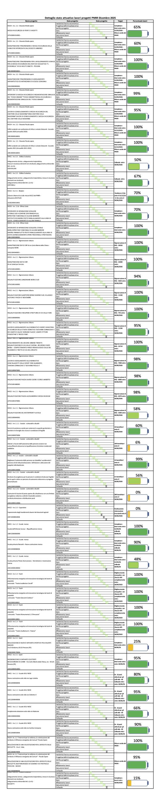 Di seguito il dettaglio dello stato dei lavori edili dei singoli progetti a dicembre 2025