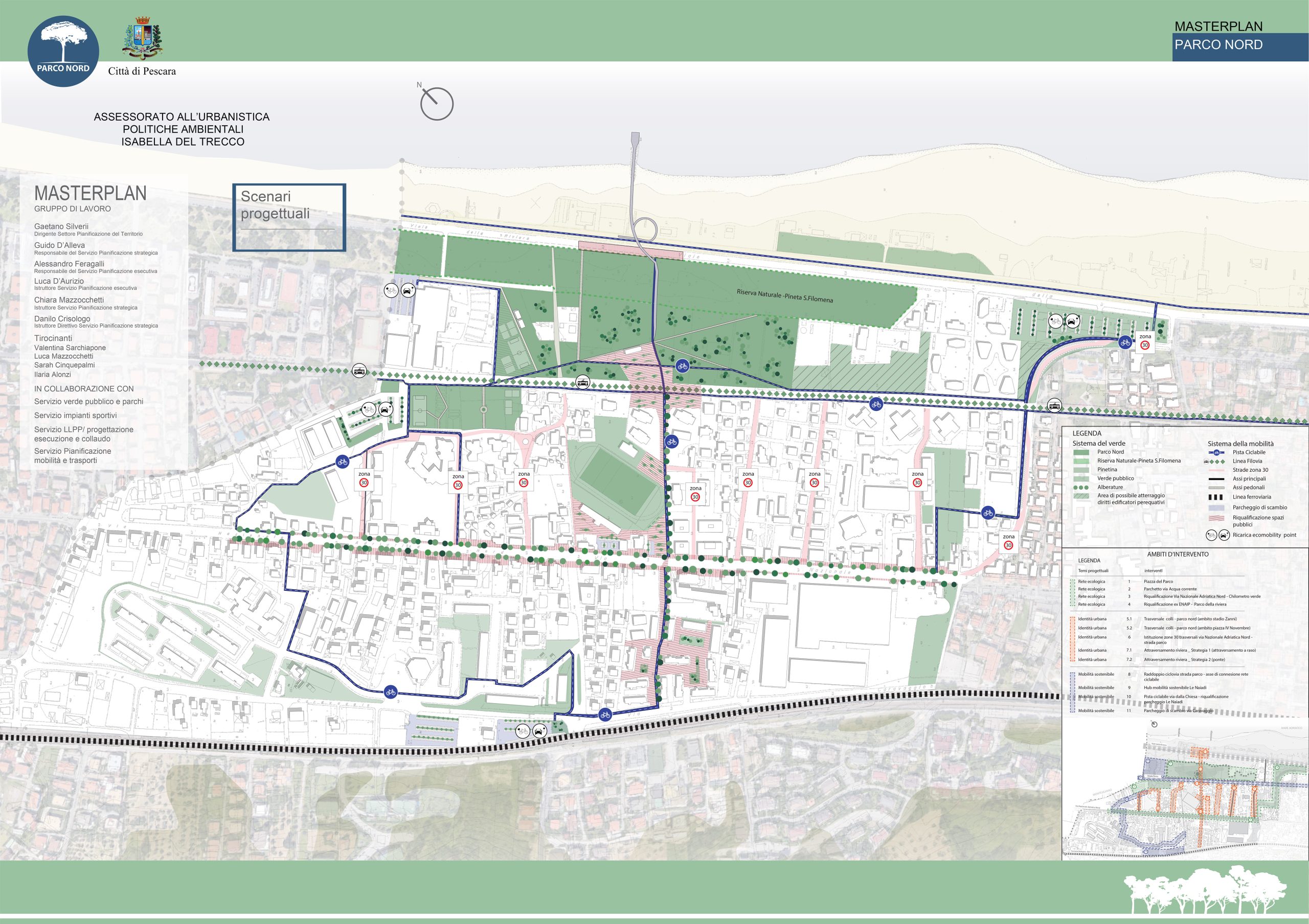 Con atto di Giunta Comunale 144 del 10 Marzo 2020 l’Amministrazione ha condiviso la proposta di Masterplan “Porta Nord” volta a valorizzazione delle componenti ambientali, sociali e funzionali di un ambito urbano posto a confine con la città di Montesilvano, dove sono state individuate due opportunità: sotto il profilo ambientale, vista la presenza di un importante polmone naturalistico ricompreso tra Viale della Riviera e la Strada Parco, la zona Le Naiadi, Riserva naturale di Santa Filomena (area verde di circa 5 ettari zonizzato come F1 Verde Pubblico – Parco Pubblico dal P.R.G. vigente) e sotto il profilo di rigenerazione urbana, relativamente alla riconnessione di spazi