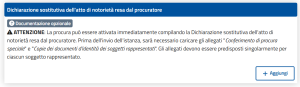 Oltre ai moduli telematici previsti per la presentazione della pratica, compila il modulo secondario “Dichiarazione sostitutiva dell’atto di notorietà resa dal procuratore”.