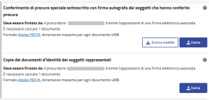Attenzione: devi ottenere un atto di conferimento per ciascuno dei soggetti che ti ha conferito il potere di rappresentanza e devi caricare singolarmente tutti i rispettivi documenti d’identità!