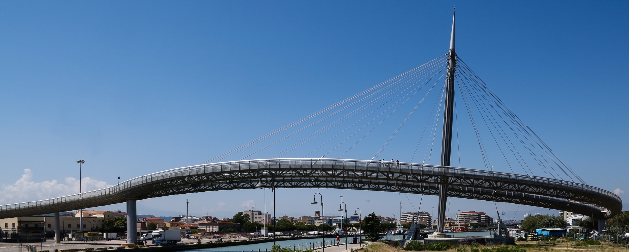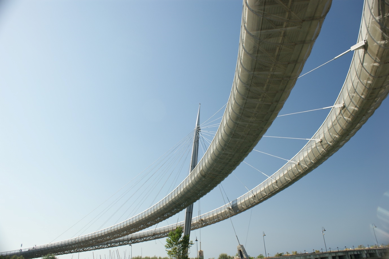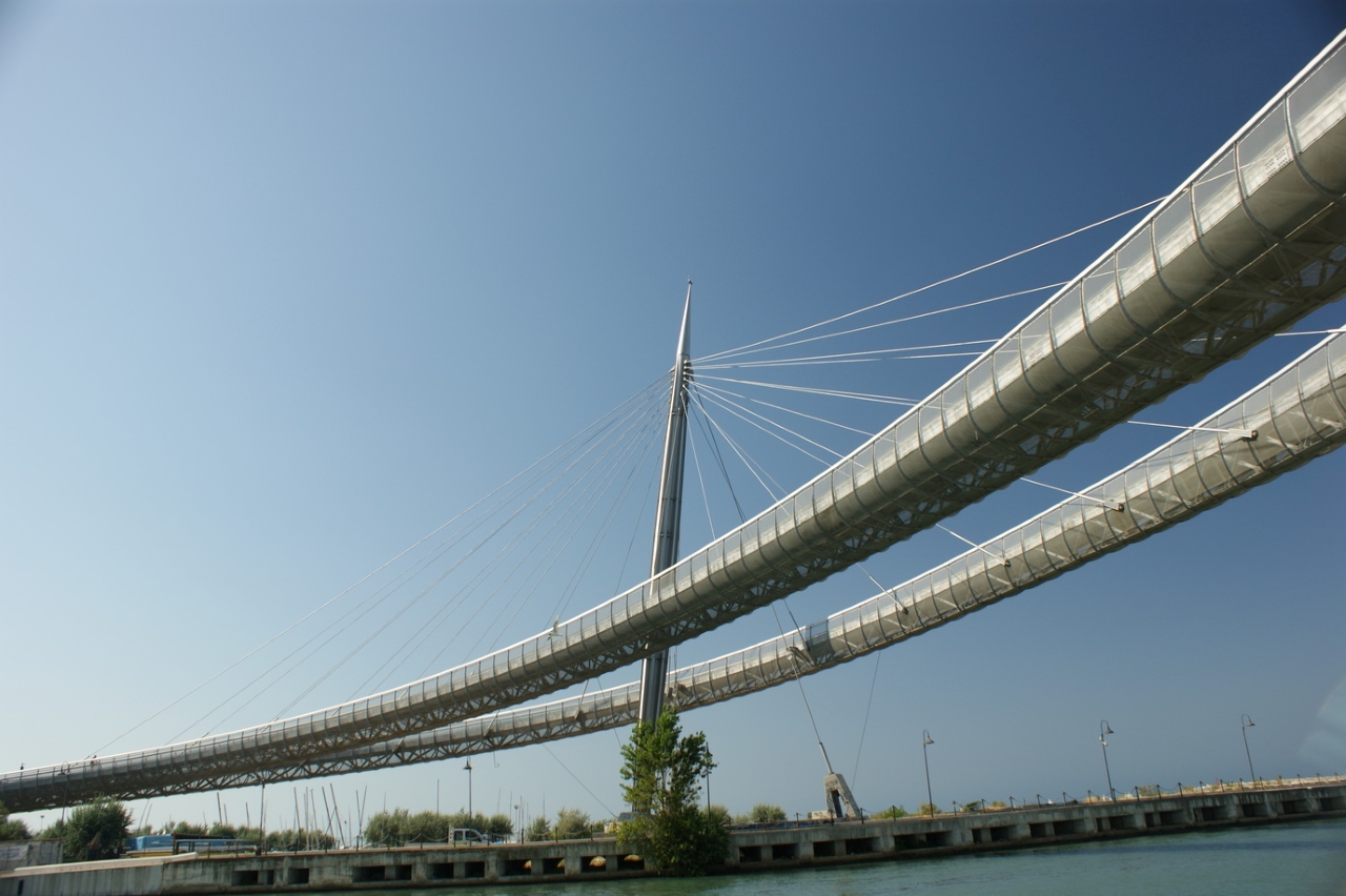 Con i suoi 466 metri di lunghezza, è il più grande ponte ciclopedonale d’Italia e uno dei maggiori d'Europa. Dotato di un pilone centrale leggermente inclinato, la sua struttura si compone di due rami, una pista ciclabile e un percorso pedonale che si ricongiungono in un’unica struttura alle estremità.