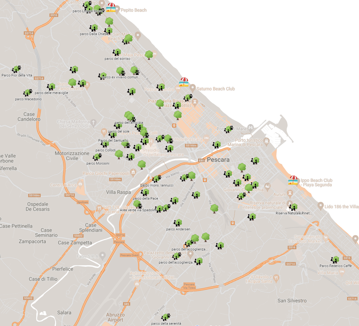 Scopri e monitora costantemente i parchi e i giardini della città nella mappa di seguito, troverai: