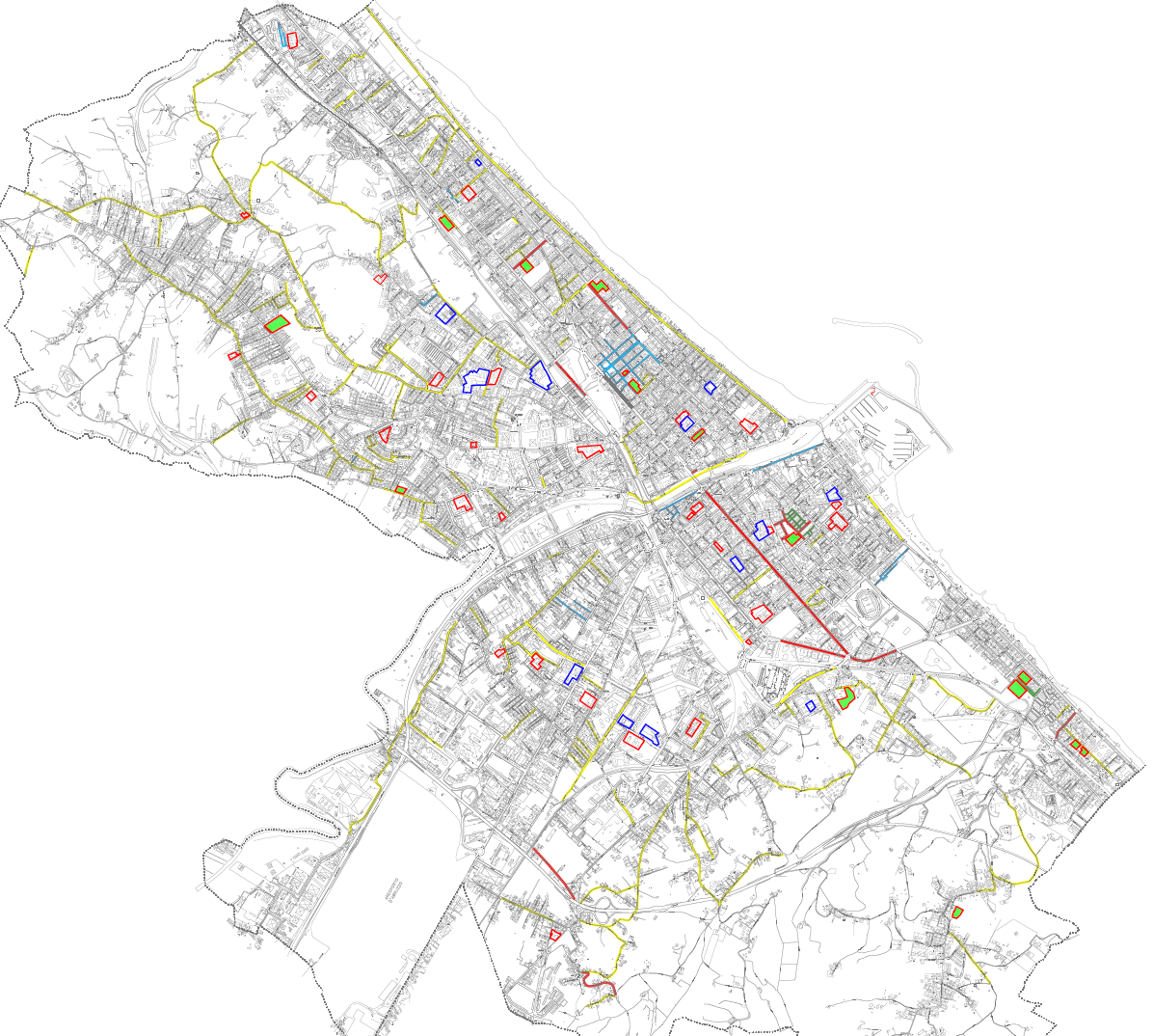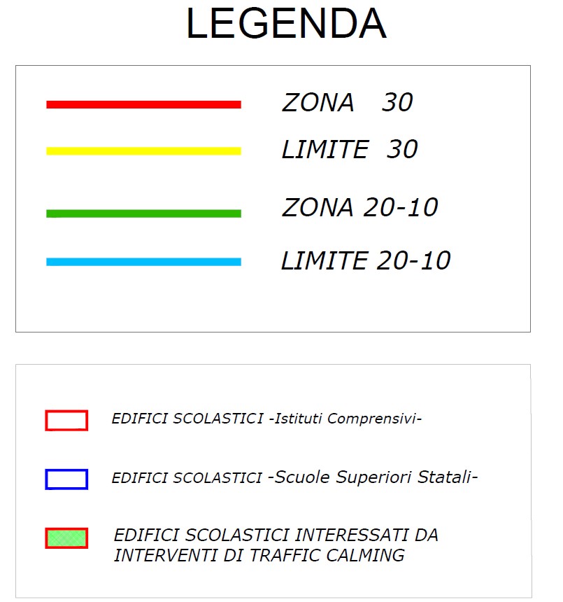 Interventi di traffic calming - zone della città in cui si è previsto l'andamento a velocità ridotta.